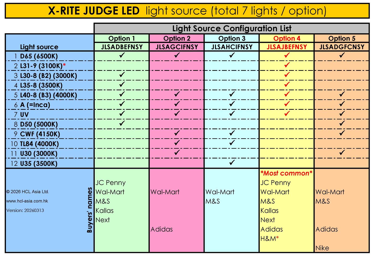 * Note: L31-9 is H&M standard light