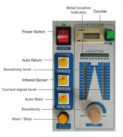SERIES: Detection Height Detection Sensitivity 100mm ø 0.7mm Fe (Standard) 120mm ø 0.8mm Fe 140mm ø 1.0mm Fe 180mm ø 1.2mm Fe